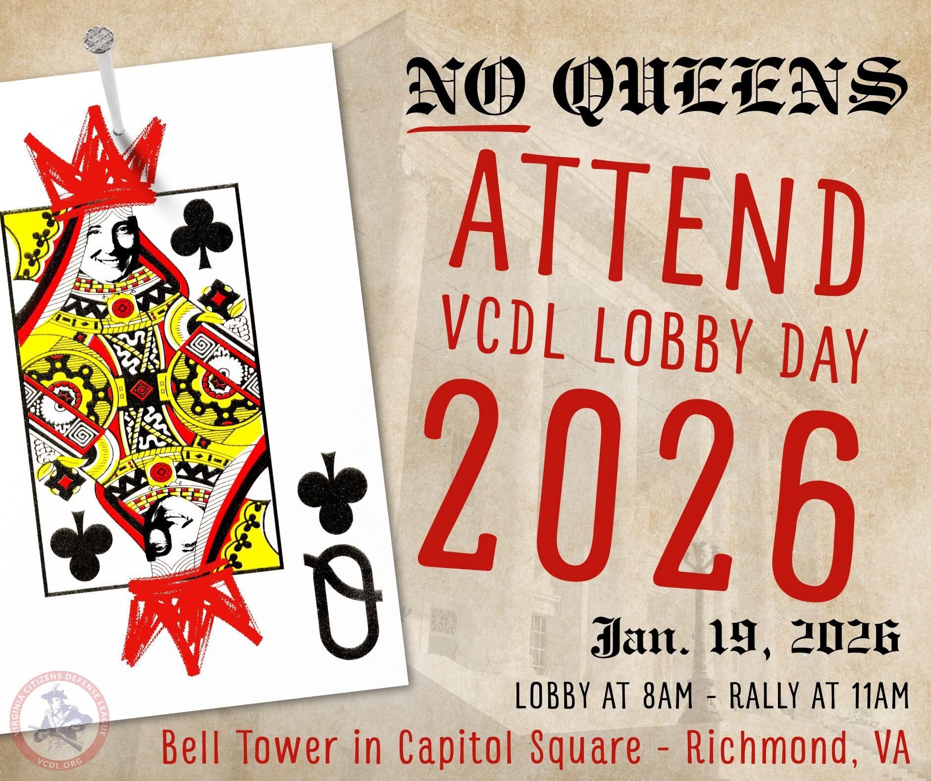 VCDL Lobby Day is on January 19, 2026, starting at 8am, with a rally at the Bell Tower at 11am. In 2020, we had over 50,000 gun-owners show up for the largest gun-rights rally in American history. While that show of solidarity by gun owners didn’t stop all the gun-control bills from passing, it certainly stopped an “assault weapon” ban that year and it toned down many of the gun-control bills that passed.